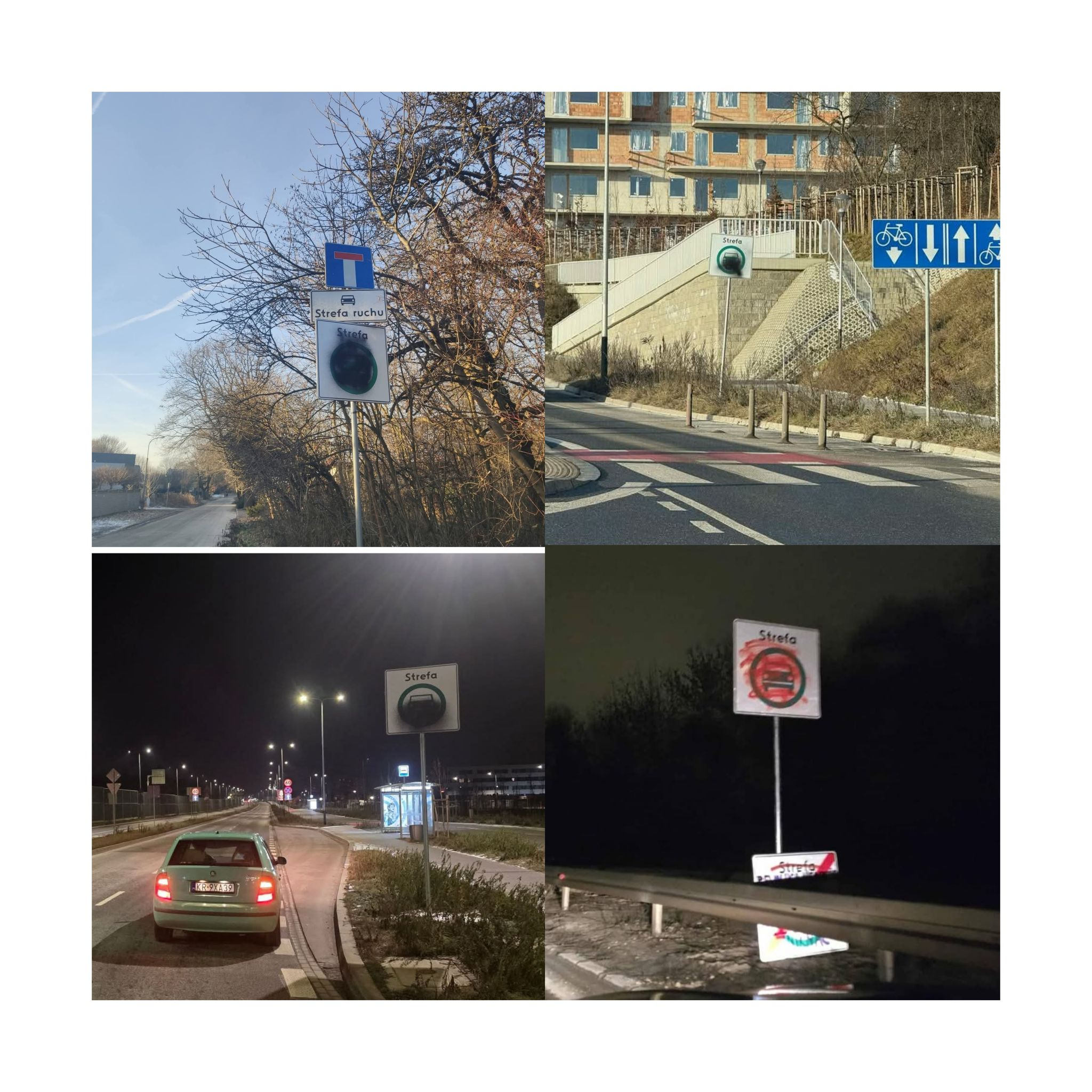 Tu (pewne szczęście w nieszczęściu) zamach na wolność był nagły i rażący, a przez to silnie zauważalny dla mieszkańców. Prawdopodobnie właśnie dlatego pojawiły się mnogie akty buntu w postaci demontażu znaków oznaczających wjazd do SCT bądź w postaci nanoszenia substancji barwiącej na te znaki drogowe (co widzimy na zdjęciach poniżej). Trochę przypomina mi to sytuację z Włoch, gdzie władze także przeginają pałę, ustawiając absurdalną ilość fotoradarów przy drogach. Doszło tam do tego, że większość z tych fotoradarów nie działa. Włosi w buncie przeciwko tak dużej ich liczbie zwyczajnie je pouszkadzali.
